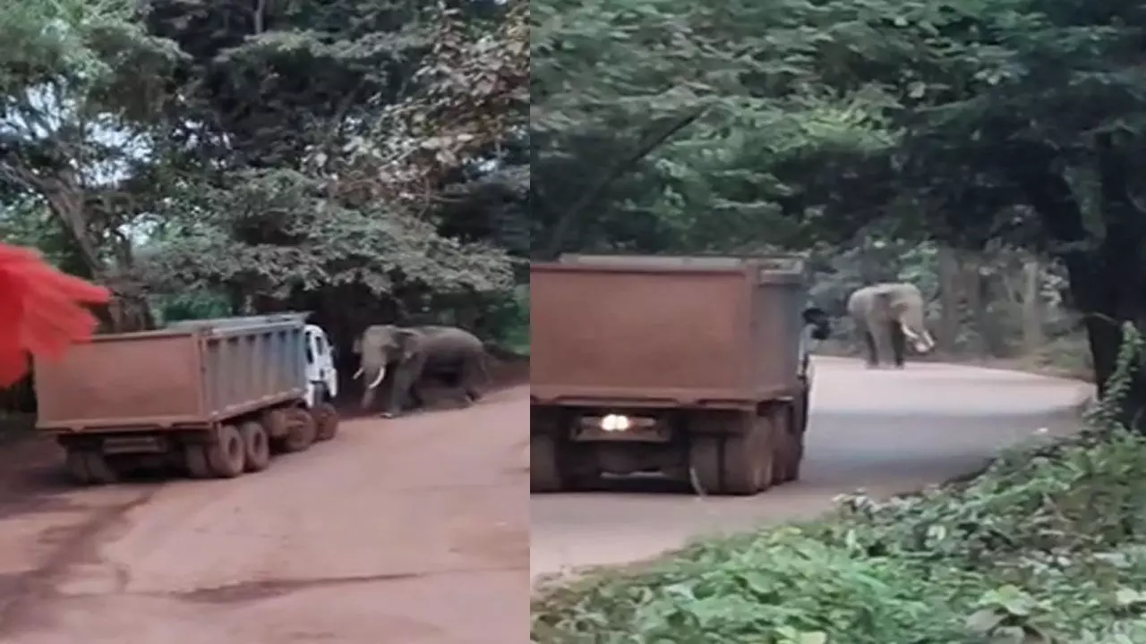 सड़क पर आ धमका गजराज: दहशत में ड्राइवर्स ने वाहनों को लिया पीछे, देखिए VIDEO...
