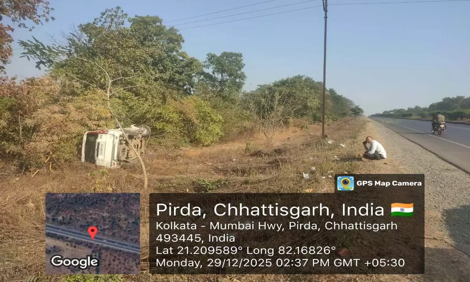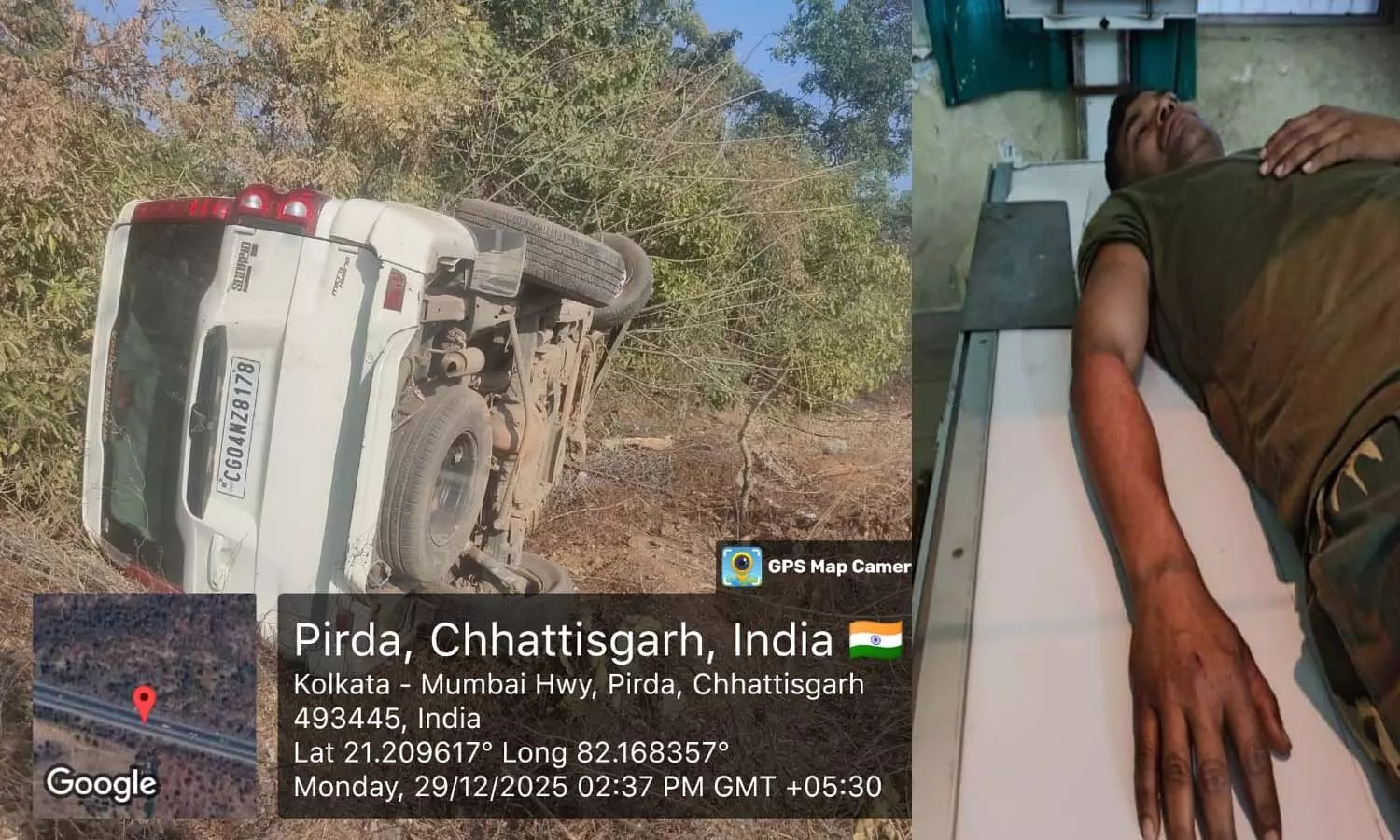 मंत्री के फॉलो वाहन NH-53 पर पलटी, CAF आरक्षक घायल