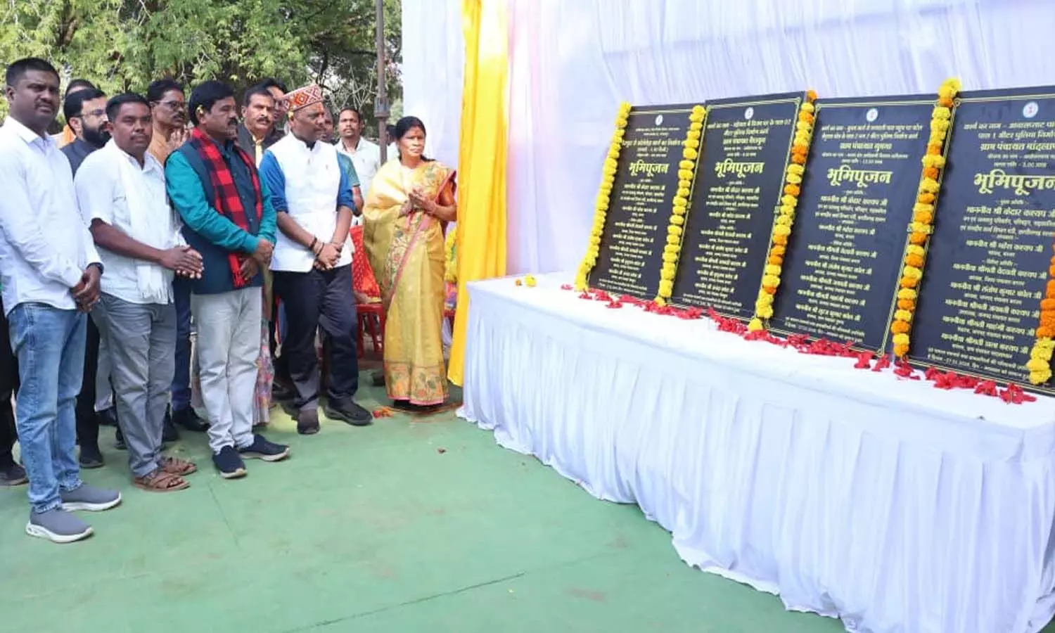 इसी तरह फरसागुड़ा में ग्राम पंचायत भानपुरी अंतर्गत 04.50 लाख की लागत से आंगनबाड़ी केंद्र बड़ेपारा भानपुरी में अहाता निर्माण कार्य 150 मी., 06 लाख की लागत से बिहरिया माता मंदिर के पास 02 मी. पुलिया निर्माण एवं 07.40 लाख की लागत से शिवगुड़ी तालाब के समीप मण्डली भवन निर्माण का भूमिपूजन किया गया। चेराकुर में ग्राम पंचायत चेराकुर अंतर्गत 06 लाख की लागत से बड़ेपारा में विजय घर के पास 02 मी. पुलिया निर्माण कार्य एवं 04 करोड़ 64 लाख 98 हजार की लागत से चेराकुर से कोलेबेड़ा मार्ग निर्माण कार्य 4.80 किमी सड़क निर्माण का भूमिपूजन किया गया।