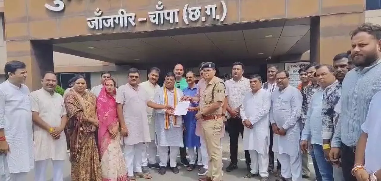 मुकेश बैस। जांजगीर-चांपा। छत्तीसगढ़ के जांजगीर-चांपा जिले के जैजैपुर विधायक बालेश्वर साहू की गिरफ्तारी की मांग को लेकर भाजपा के नेता एसपी कार्यालय पहुंचे। पूर्व नेता प्रतिपक्ष नारायण चंदेल और सक्ति जिला अध्यक्ष कृष्णकांत चंद्रा सहित भाजपा कार्यकर्ताओं ने गिरफ्तारी की मांग को लेकर अतिरिक्त पुलिस अधीक्षक को ज्ञापन सौंपा।