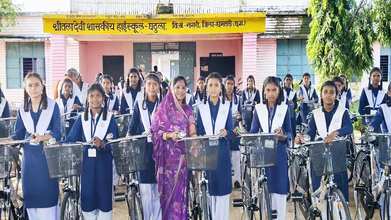 गोपी कश्यप - नगरी। छत्तीसगढ़ के नगरी क्षेत्र के शासकीय शीतला देवी हाई स्कूल घटुला में सरस्वती साइकिल योजना के अंतर्गत छात्राओं में साइकिलें बांटी गईं। कार्यक्रम की मुख्य अतिथि जनपद पंचायत नगरी की सभापति प्रेमलता नागवंशी रहीं। उन्होंने अपने उद्बोधन में कहा कि, सरस्वती साइकिल योजना का उद्देश्य बालिकाओं को शिक्षा के प्रति प्रोत्साहित करना और उन्हें आगे बढ़ने का अवसर प्रदान करना है। यह योजना विष्णु देव सरकार की एक अत्यंत सराहनीय पहल है।
