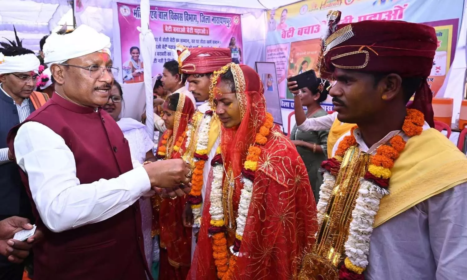 मुख्यमंत्री विष्णु देव साय ने कन्या विवाह योजना अंतर्गत मुख्यधारा में लौटे 4 आत्मसमर्पित जोड़ों को आशीर्वाद देकर उनके नए जीवन की शुरुआत पर शुभकामनाएँ दीं।