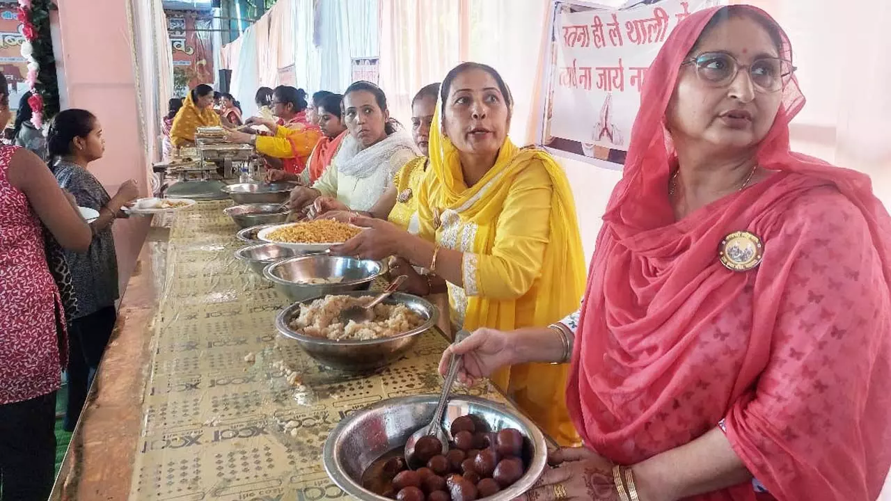 भोजन में दाल, चावल, दो-तीन प्रकार की सब्जियाँ, पूरी, पकोड़ा, आलू छोले, मिक्स सब्जी, बूंदी वाली कढ़ी, अचार, सलाद, खीर, हलवा, गुलाब जामुन जैसे स्वादिष्ट व्यंजन परोसे जा रहे हैं। आरओ पानी, कारपेट बिछी व्यवस्था, राउंड टेबल और कुर्सियों के साथ विवाह जैसा माहौल हर आगंतुक को आत्मीय अनुभव दे रहा है।
