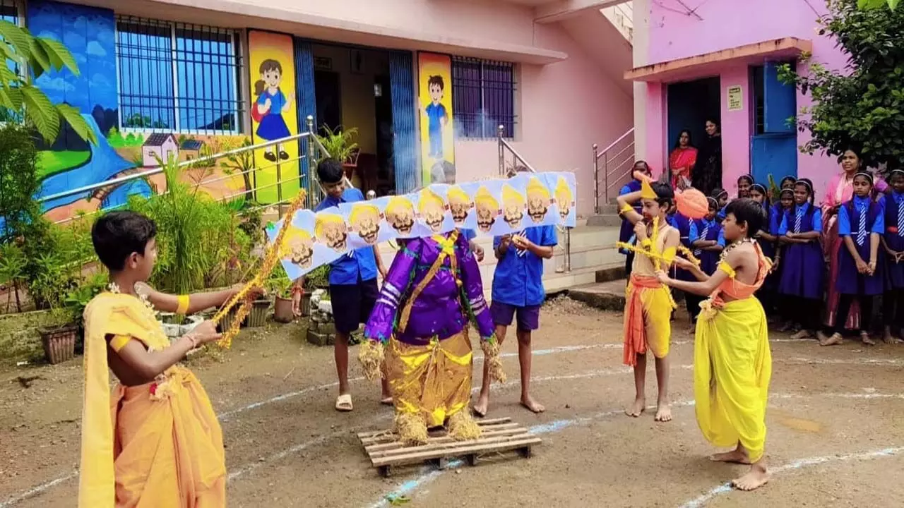 नवरात्रि और दशहरे पर आयोजन: स्कूली छात्र- छात्राओं ने गरबा और राम-रावण संवाद से बांधा समां