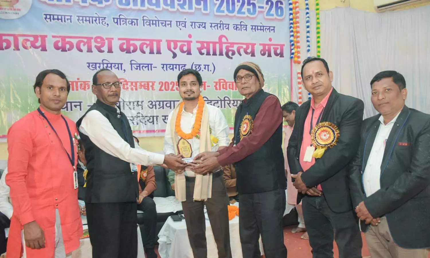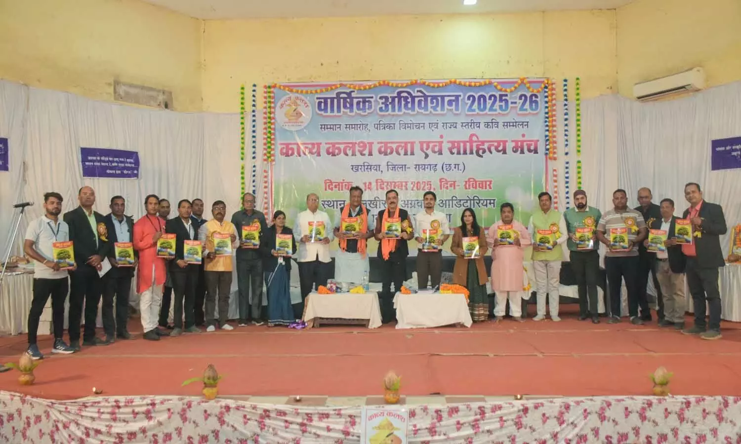 खरसिया। छत्तीसगढ़ के खरसिया में रविवार को साहित्य, कला और संस्कृति के रंग में पूरी तरह रंगा नजर आया, जब काव्य कलश कला और साहित्य मंच, खरसिया (जिला रायगढ़) द्वारा आयोजित पंचम वार्षिक अधिवेशन, सम्मान समारोह एवं अखिल भारतीय कवि सम्मेलन का भव्य आयोजन संपन्न हुआ। 14 दिसंबर को लखीराम अग्रवाल ऑडिटोरियम, ठाकुरदिया खरसिया में सुबह 10 बजे से शाम 6 बजे तक चले इस विशाल साहित्यिक महोत्सव में प्रदेशभर से आए साहित्यकारों, कवियों एवं साहित्यप्रेमियों ने उत्साहपूर्वक भाग लिया।