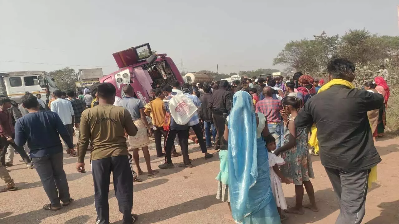 रायगढ़ जिले के खरसिया स्थित चोढा चौक पर ट्रक ने बस को टक्कर मार दी, जिससे बस पलट गई। हादसे में कंडक्टर की मौके पर मौत और 10 यात्री गंभीर रूप से घायल हुए। @RaigarhDist #Chhattisgarh #BusAccident pic.twitter.com/eclzglF0e7