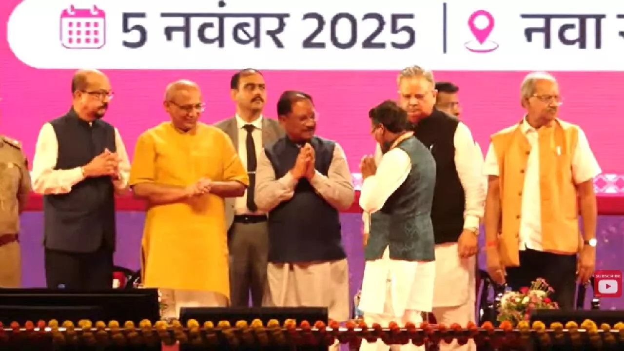 मंच पर चीफ गेस्ट उप राष्ट्रपति सीपी राधाकृष्णन और CM विष्णुदेव साय
