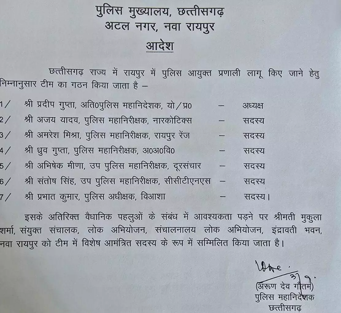 रायपुर में जल्द लागू होगा कमिश्नरी प्रणाली: डीजीपी अरुण देव गौतम ने बनाई सात आईपीएस अधिकारियों की कमेटी