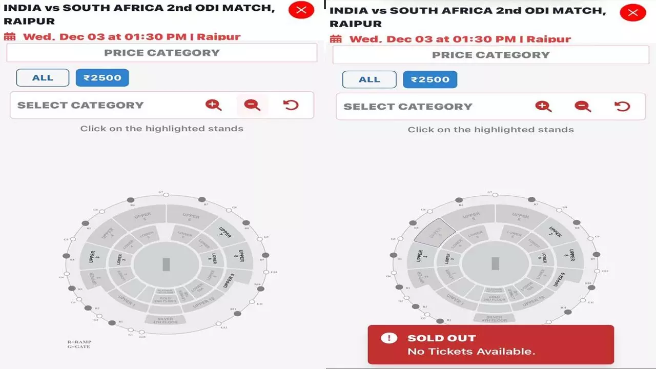 रायपुर। छत्तीसगढ़ की राजधानी रायपुर स्थित शहीद वीर नारायण सिंह इंटरनेशनल क्रिकेट स्टेडियम में 3 दिसंबर को भारत और दक्षिण अफ्रीका के बीच वन डे इंटरनेशनल मैच खेला जाना है। इस मैच के लिए टिकट बिक्री 22 नवंबर की शाम पांच बजे से आनलाइन शुरू हुई। हैरानी की बात यह है कि, बिक्री शुरू होने के मात्र 15 मिनट बाद ही टिकट बिक्री करने वाले वेबसाइट ने सोल्ड आउट दिखाना शुरू कर दिया।