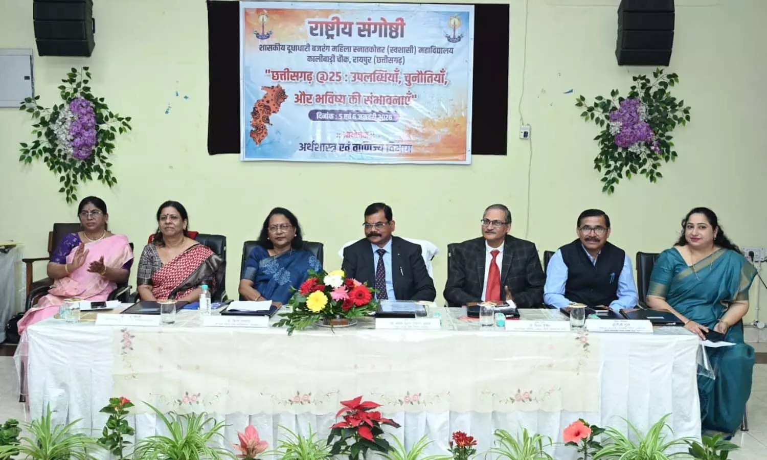रायपुर। शासकीय दूधाधारी बजरंग महिला स्नातकोत्तर (स्वशासी) महाविद्यालय के अर्थशास्त्र एवं वाणिज्य विभाग द्वारा 5 एवं 6 जनवरी 2026 को द्वि-दिवसीय राष्ट्रीय संगोष्ठी 'छत्तीसगढ़ @ 25 : उपलब्धियां, चुनौतियां एवं भावी संभावनाएं' का आयोजन किया गया।