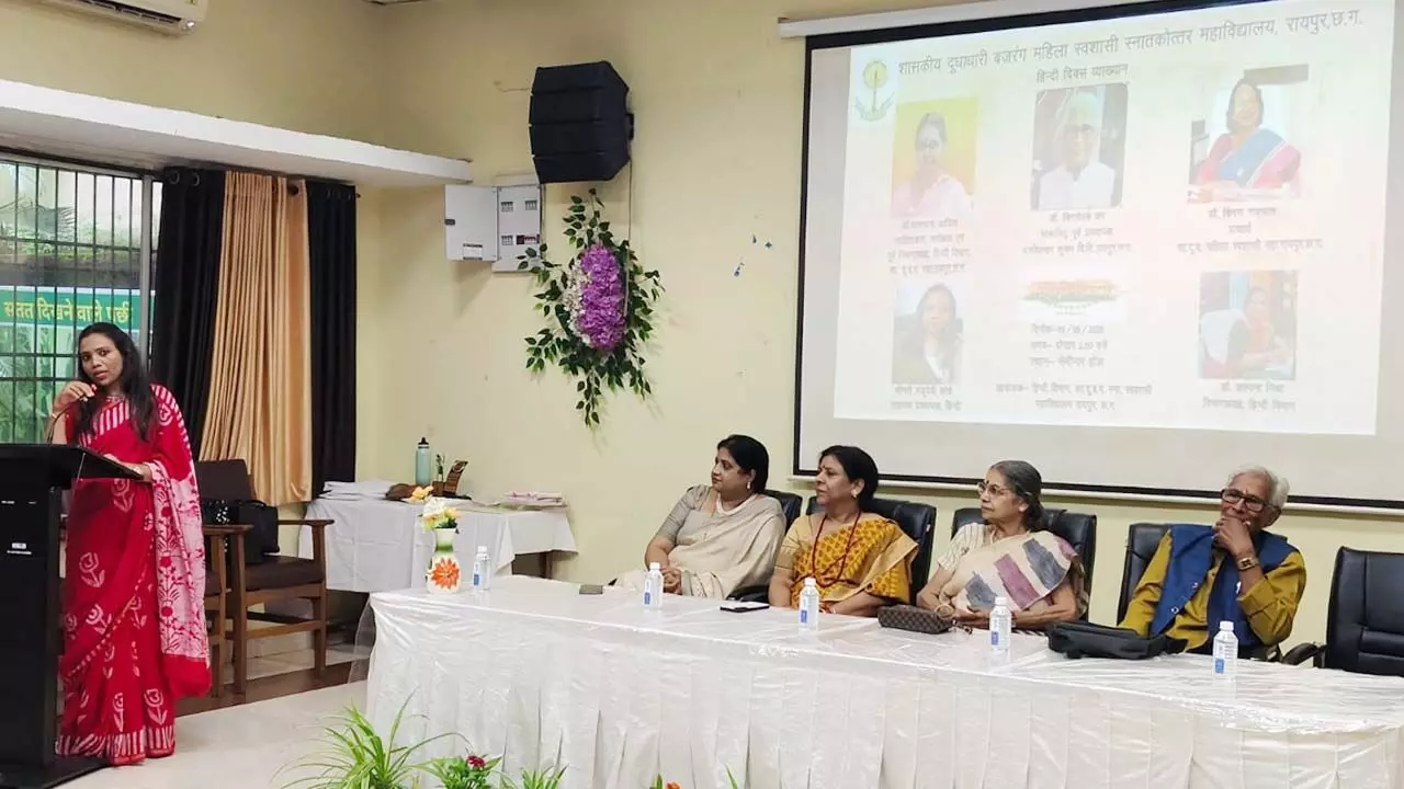 रायपुर। छत्तीसगढ़ की राजधानी रायपुर के शासकीय दूधाधारी बजरंग महिला स्नातकोत्तर स्वशासी महाविद्यालय में हिंदी पखवाड़ा के अवसर पर शुक्रवार को एक विचारोत्तेजक व्याख्यान का आयोजन किया गया। कार्यक्रम का उदेश्य हिंदी भाषा के महत्त्व और उसके संरक्षण और संवर्धन पर विचार-विमर्श करना रहा।