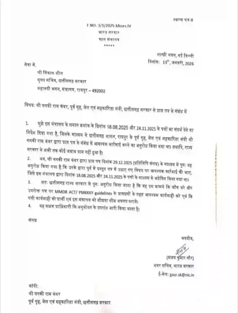 रंग लाई ननकीराम कंवर की मुहीम: DMF फंड में गड़बड़ी के पत्र पर केंद्र सरकार ने मुख्य सचिव से मांगा जवाब