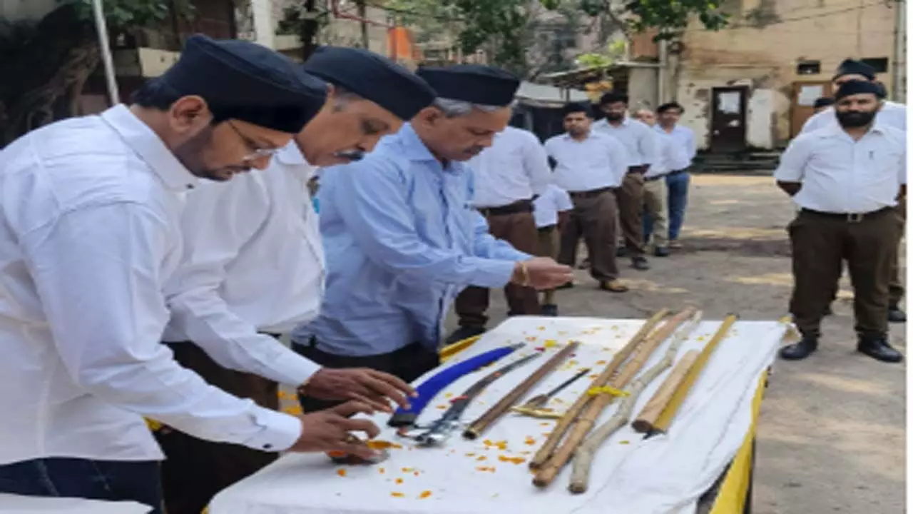 ध्वज प्रणाम और शस्त्र पूजन से हुई शुरुआत