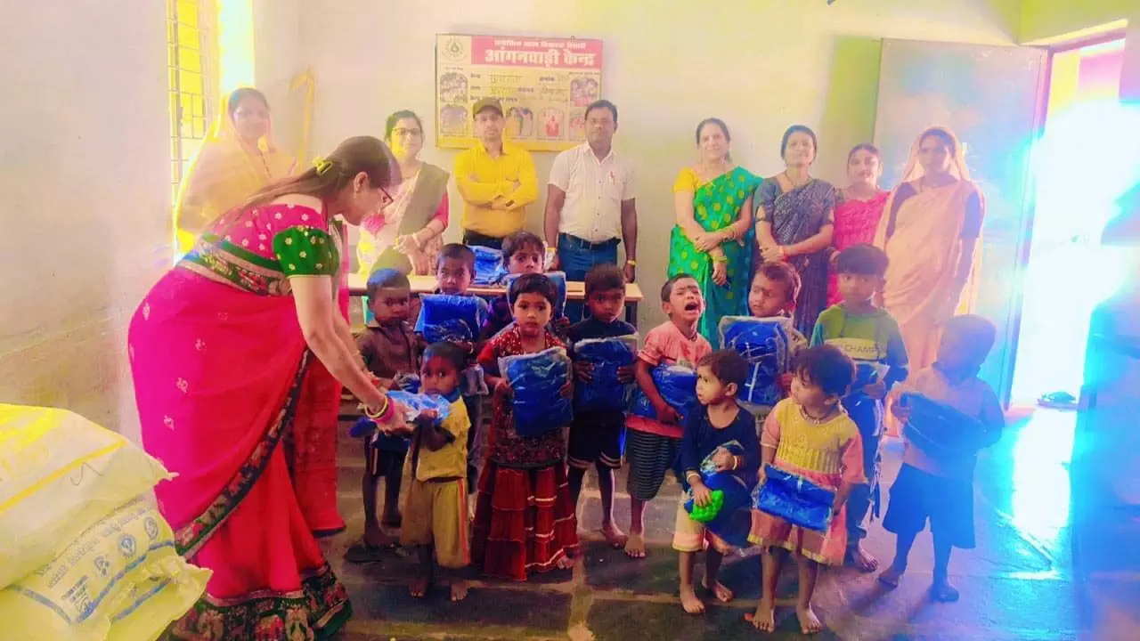 शिक्षिका ने आंगनबाड़ी के बच्चों में बांटा ट्रैक सूट