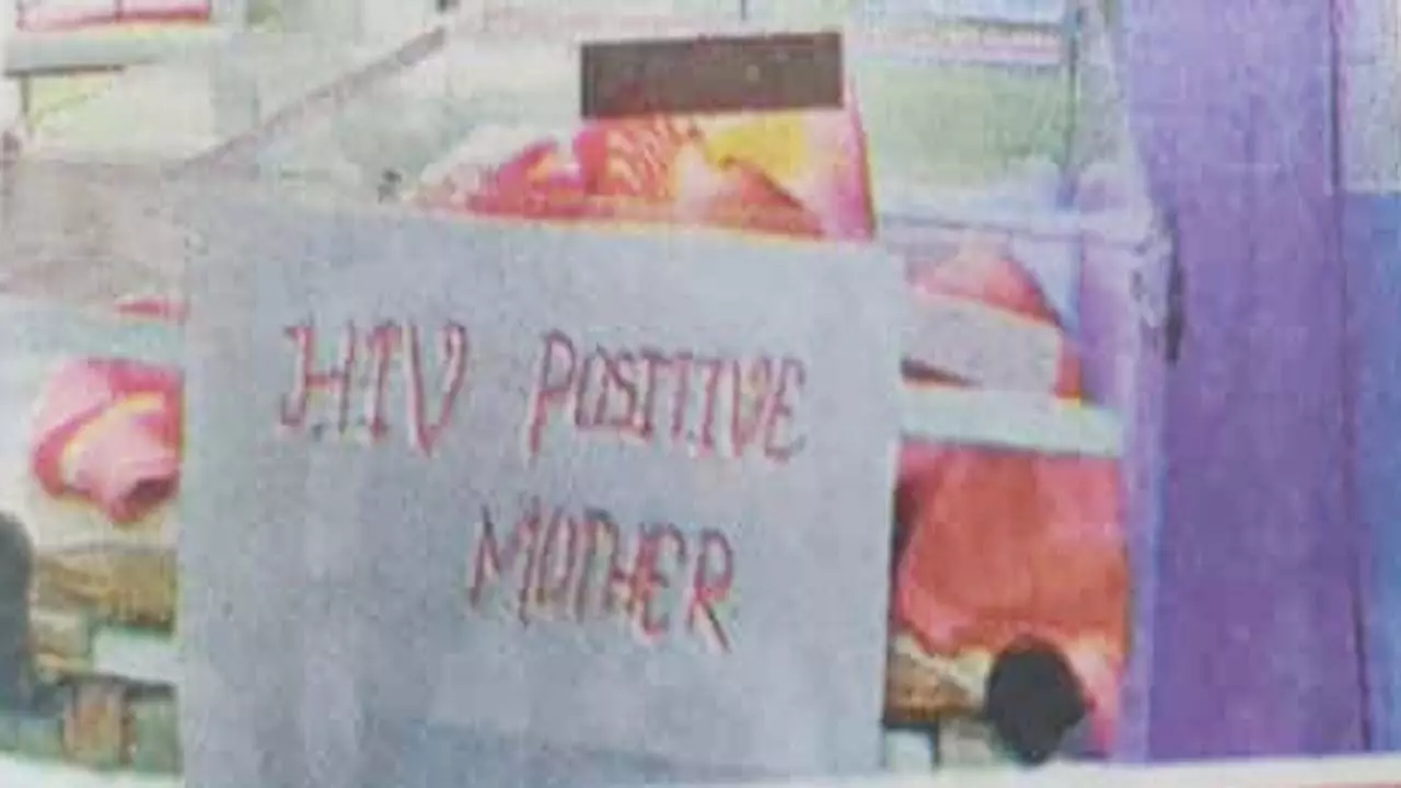 अंग्रेजी भाषा में दर्शाए गए बोर्ड में बड़े बड़े अक्षरों में एचआईवी पॉजिटिव मदर लिख दिया गया है, जिससे आसपास से गुजरने वाले और अन्य लोगों को यह आसानी से पता चल जाए कि यह वह बच्चा है, जिसकी मां एचआईवी से संक्रमित है। राजधानी रायपुर से महज कुछ किलोमीटर दूर स्थित तिल्दा क्षेत्र में रहने वाली 26 वर्षीय महिला को 4 अक्टूबर को प्रसव पीड़ा होने के बाद आंबेडकर अस्पताल के स्त्री एवं प्रसूती रोग विभाग के वार्ड में भर्ती कराया गया।