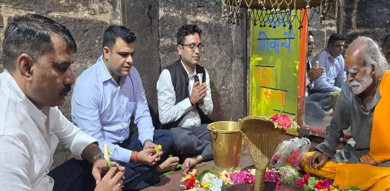 भगवान भोलेनाथ की पूजा-अर्चना करते भाजपा नेता किशोर देवांगन