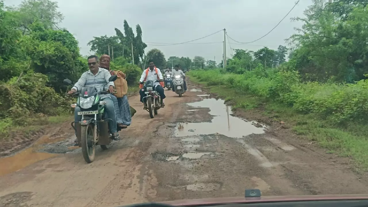 राजिम- घटारानी- छुरा मार्ग का बुरा हाल: सड़क पर बने बड़े- बड़े गढ्ढे दुर्घटनाओं को दे रहे आमंत्रण