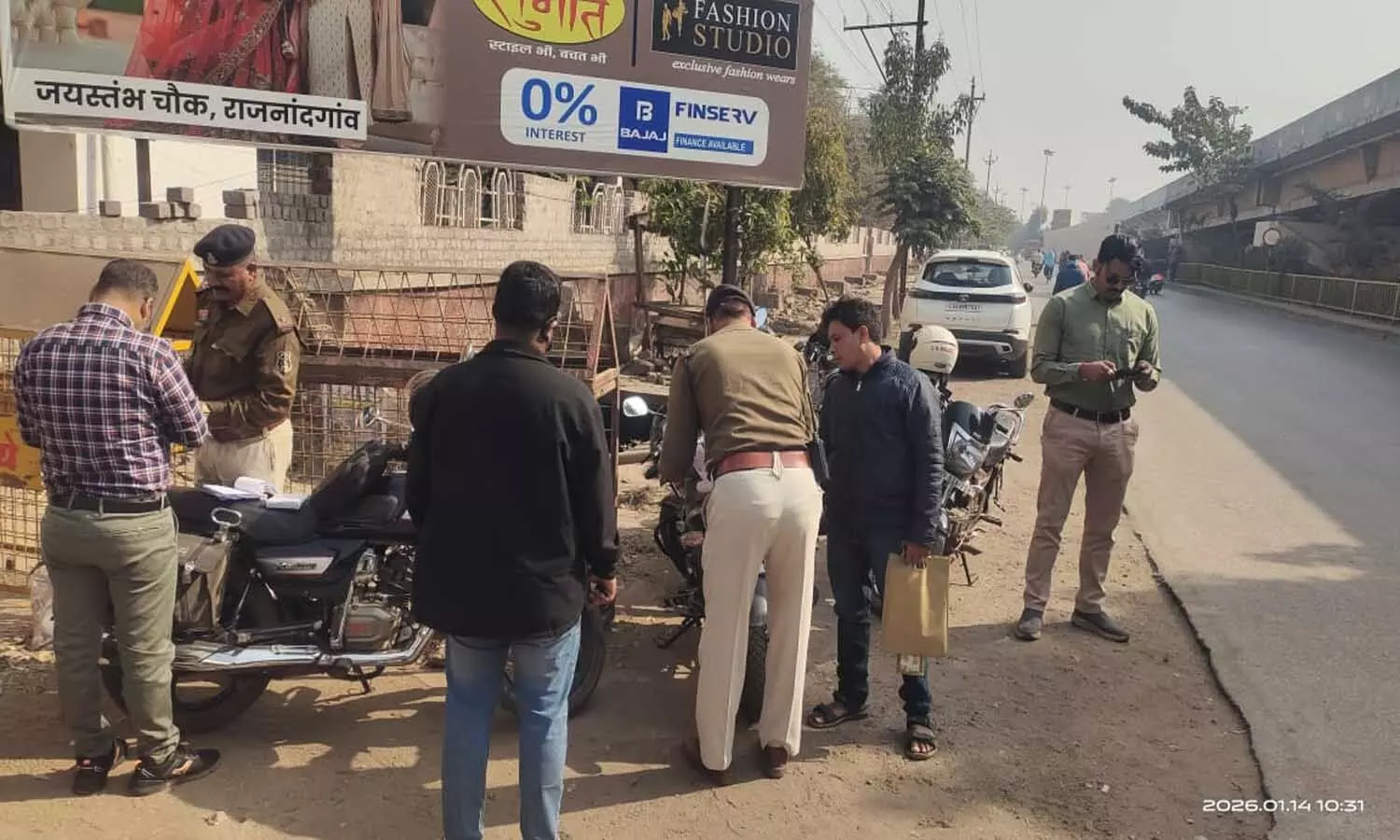 बिना हेलमेट चालकों पर कार्रवाई करती हुई पुलिस