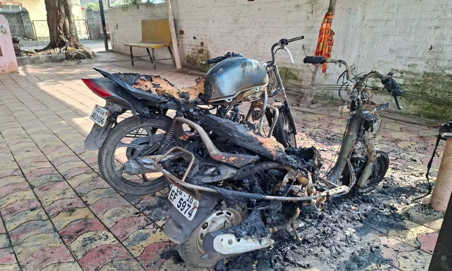 मंदिर परिसर में असामाजिक तत्वों की शरारत: खड़ी मोटरसाइकिलों और स्कूटियों को लगा दी आग, स्थानीय लोगों में आक्रोश