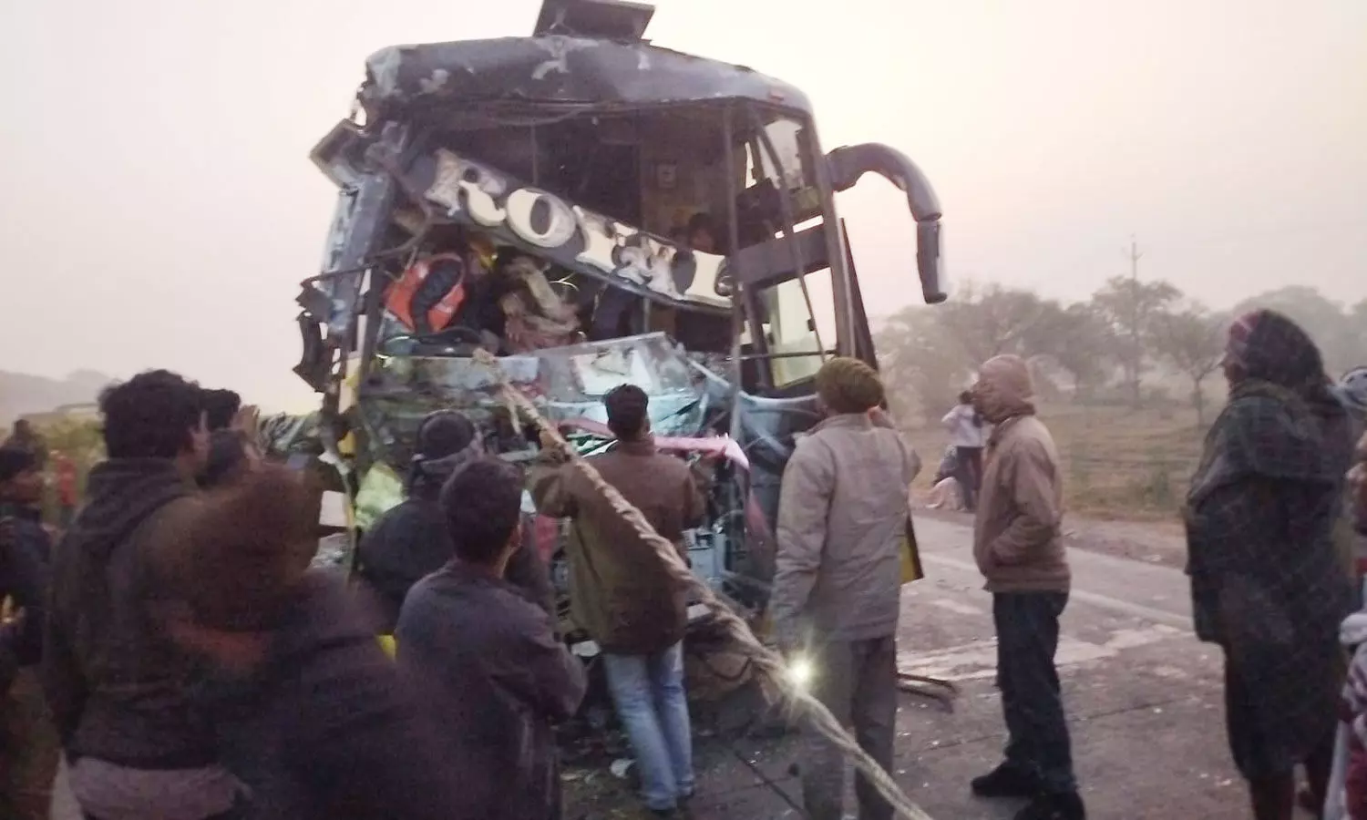 खड़े ट्रेलर से जा टकराई बस, 12 यात्री घायल