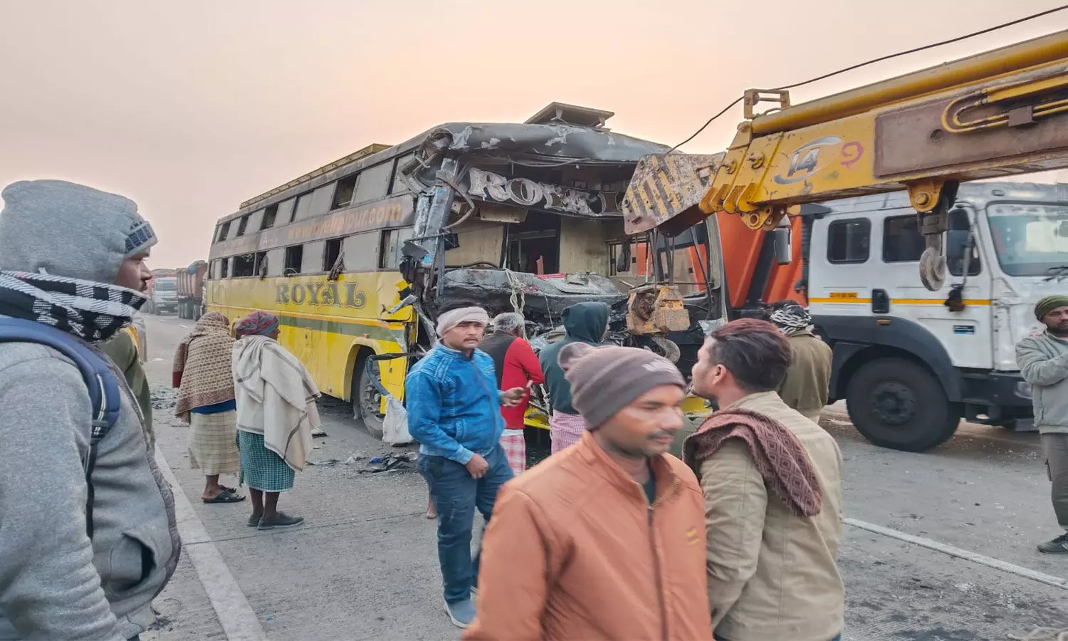 बिलासपुर- रायपुर नेशनल हाईवे पर हादसा: खड़े ट्रेलर से जा टकराई बस, 12 यात्री घायल, घना कोहरा बना हादसे की वजह
