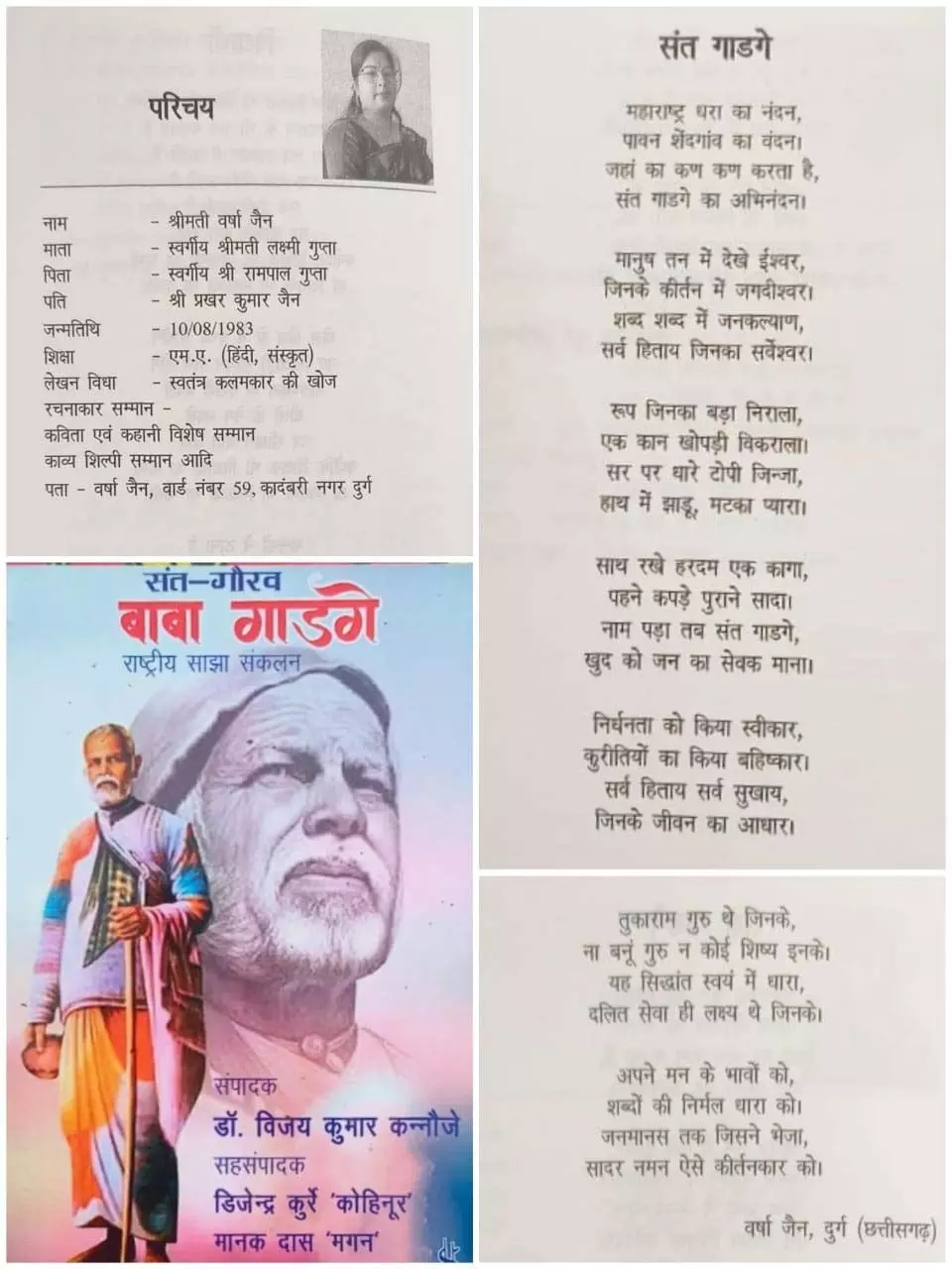 बेमेतरा। बेमेतरा जिले के शासकीय प्राथमिक शाला केंवतरा की शिक्षिका व लेखिका वर्षा जैन को साहित्य साधना के लिए 'समता साहित्य भूषण अवार्ड 2025' से सम्मानित किया गया। यह सम्मान साहित्य के क्षेत्र में निरंतर साधना और संत गाडगे के जीवन चरित्र पर आधारित लेखन के लिए 'समता साहित्य अकादमी' द्वारा यह सम्मान किया गया।