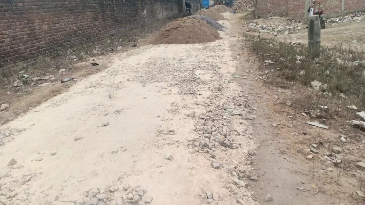 सड़क में लगाई गई घटिया सीमेंट और गिट्टी- ग्रामीण