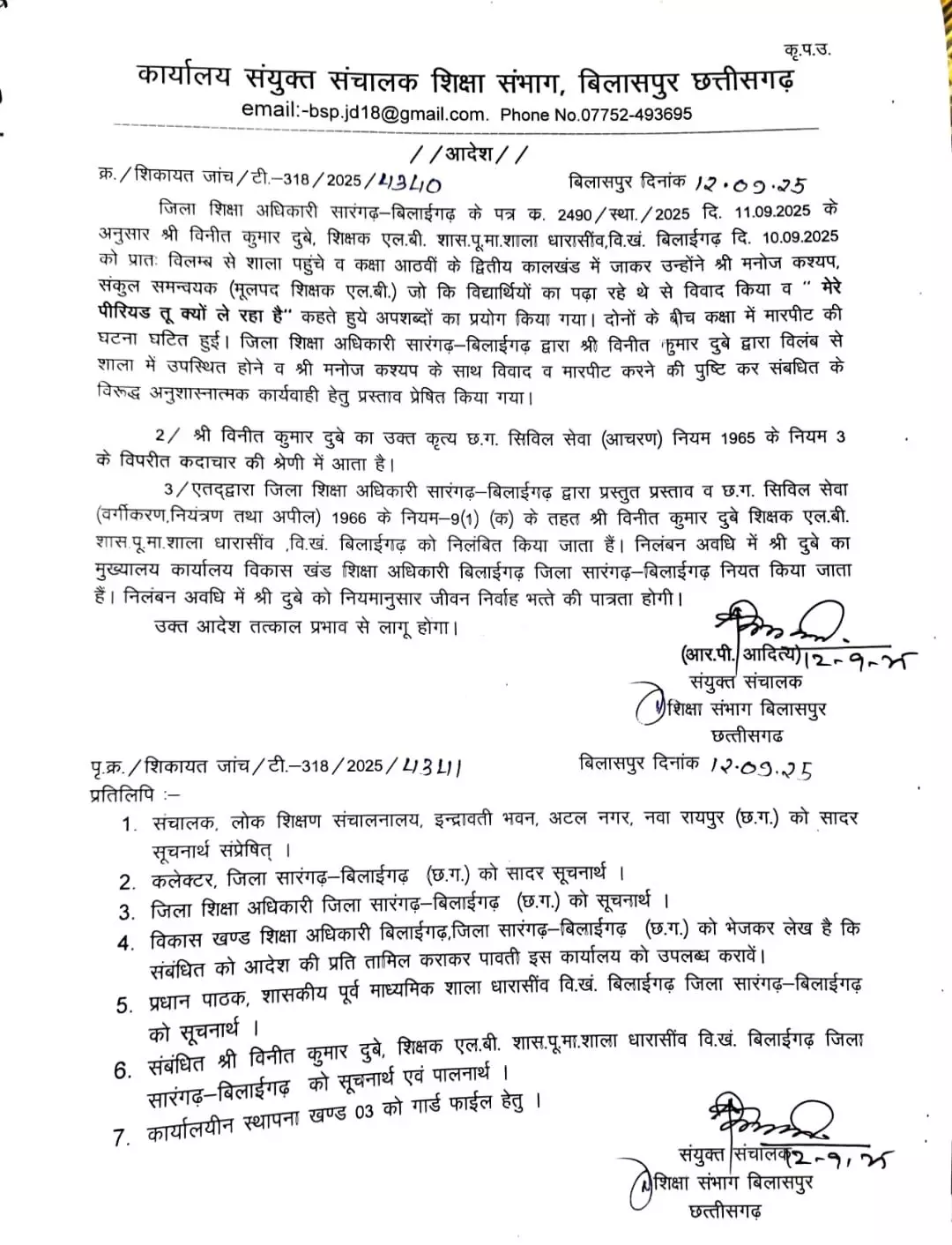 क्लास रूम में भिड़े दो शिक्षक: एक निलंबित, तीन को कारण बताओ नोटिस जारी
