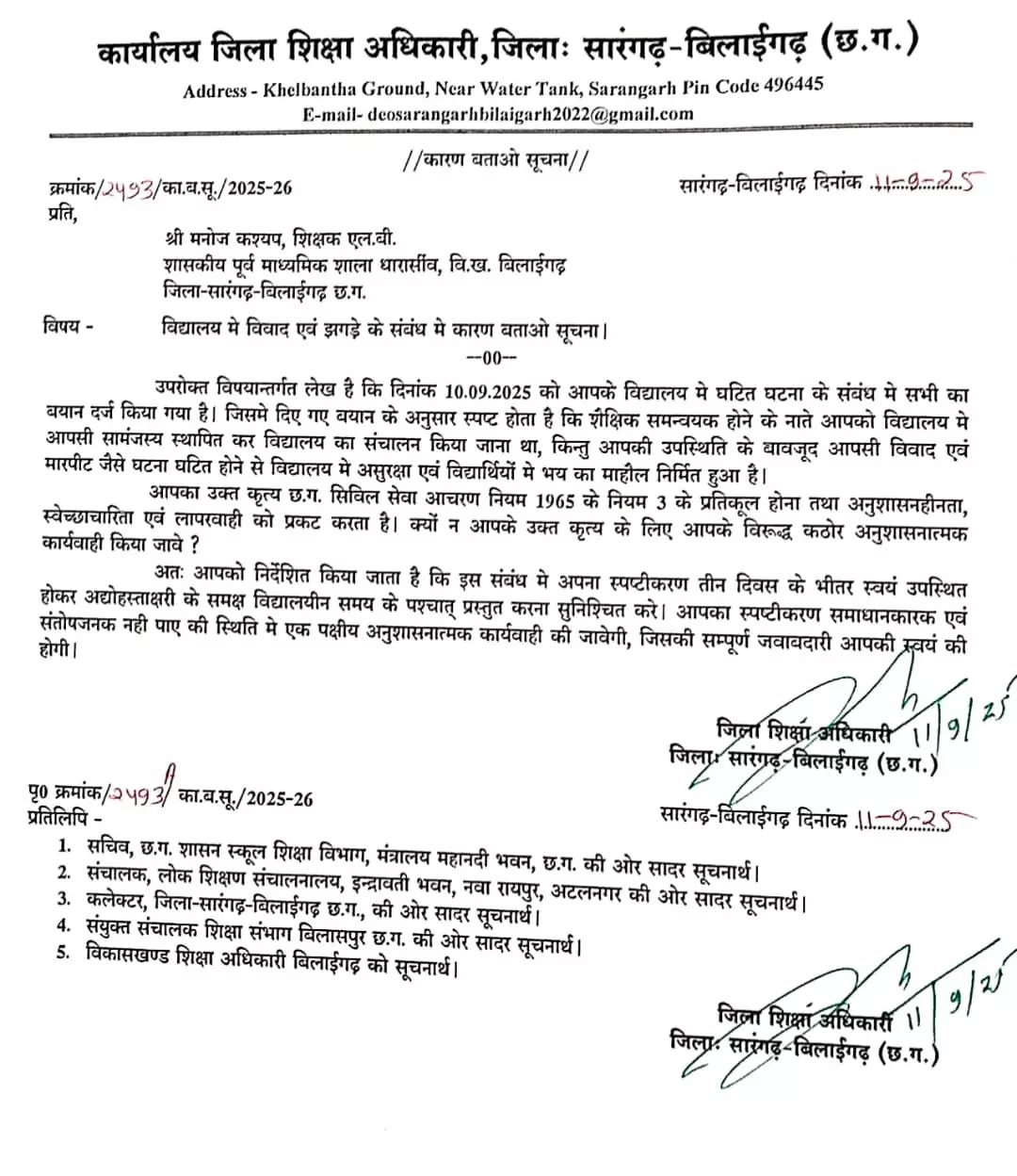 एक निलंबित तीन को कारण बताओ नोटिस जारी