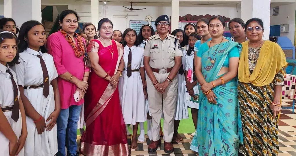 महिला पुलिस को अपने बीच पाकर बच्चे हुए खुश