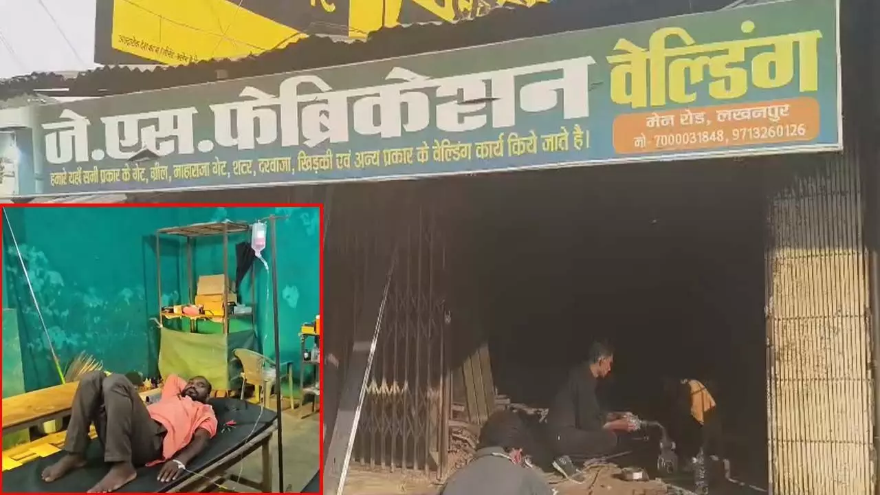 सरगुजा जिले के लखनपुर में वेल्डिंग दुकान के अंदर झोलाछाप डॉक्टर द्वारा अस्पताल चलाने का मामला सामने आया है, गौहर अली नामक व्यक्ति तीन कमरों में मरीजों को भर्ती कर इलाज कर रहा था. @SurgujaDist #Chhattisgarh #hospitality #weldingshop pic.twitter.com/f3NkpXVNxE