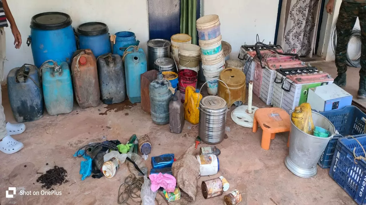 जवानों ने नक्सलियों के छिपाए गए ठिकाने से गन पावडर, बीजीएल सेल, कार्डेक्स वायर, बीजीएल राउण्ड, आरडीएक्स, इलेक्ट्रीक डेटोनेटर, नॉन इलेक्ट्रीक डेटोनेटर, पटाखे, तीर बम(इम्प्रोवाइज्ड), बैरल में उपयोग में आने वाला आयर रॉड, इम्प्रोवाईज्ड ग्रेनेड, क्रिस्टल शुगर ,रायफल बैनट, आयरन चिम्टा, आयरन रॉड, आयरन कटर,बैटरी, सोलर इन्वर्टर, लिथियम बैटरी, स्पूल वायर, कॉपर वायर बारमद किया है