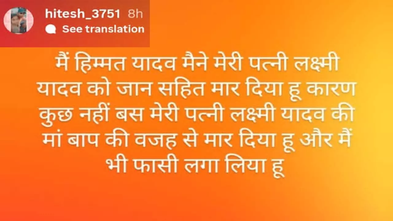 धमतरी जिले में नव विवाहित दंपत्ति की लाश उनके ही घर में संदिग्ध हालत में पाई गई है। बताया जा रहा है कि, मरने से पहले युवक ने व्हाट्सएप स्टेटस डाला था। उसने स्टेटस में पत्नी की हत्या फिर आत्महत्या की बात लिखी थी। जिसमें सास और ससुर को जिम्मेदार ठहराया गया है। बता दें कि, यह शादी साल भर पहले हुई थी। दंपत्ति की पहचान हिम्मत यादव और लक्ष्मी यादव नाम के रूप में हुई है। यह पूरी घटना बड़ी करेली चौकी के हरदी गांव की है।