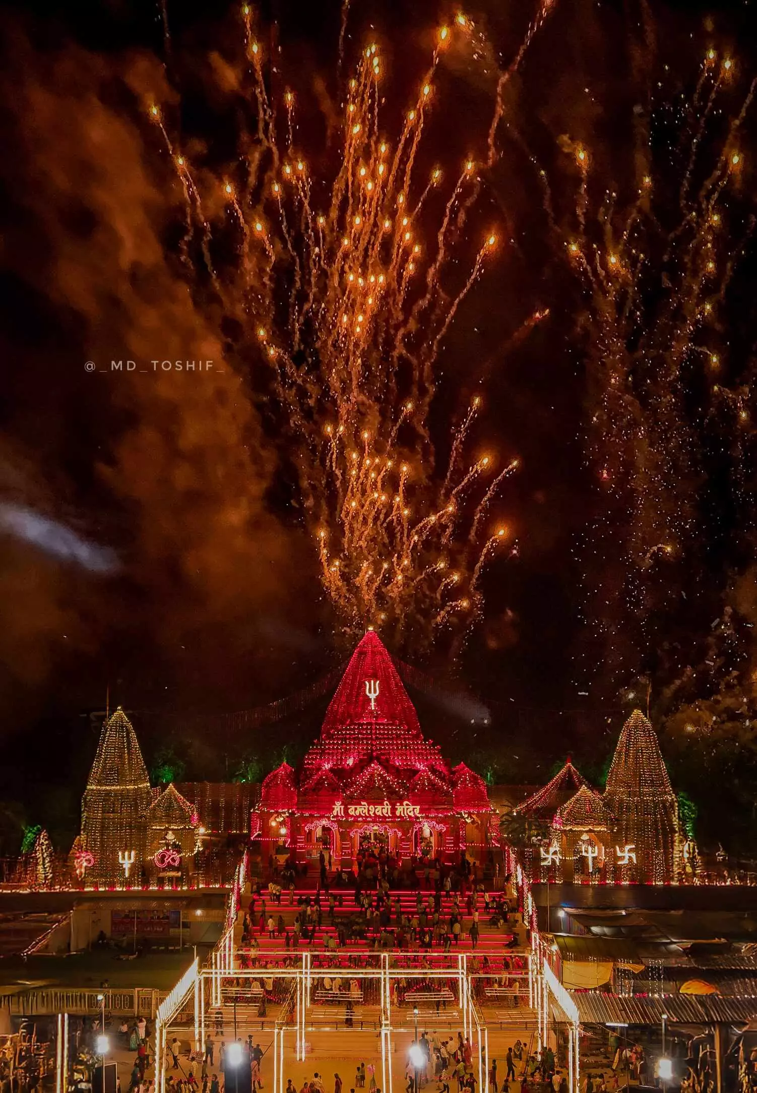 पहाड़ी के नीचे विराजमान छोटी मां बम्लेश्वरी मंदिर के रात का नजारा ( फोटो - एमडी तोसिफ )