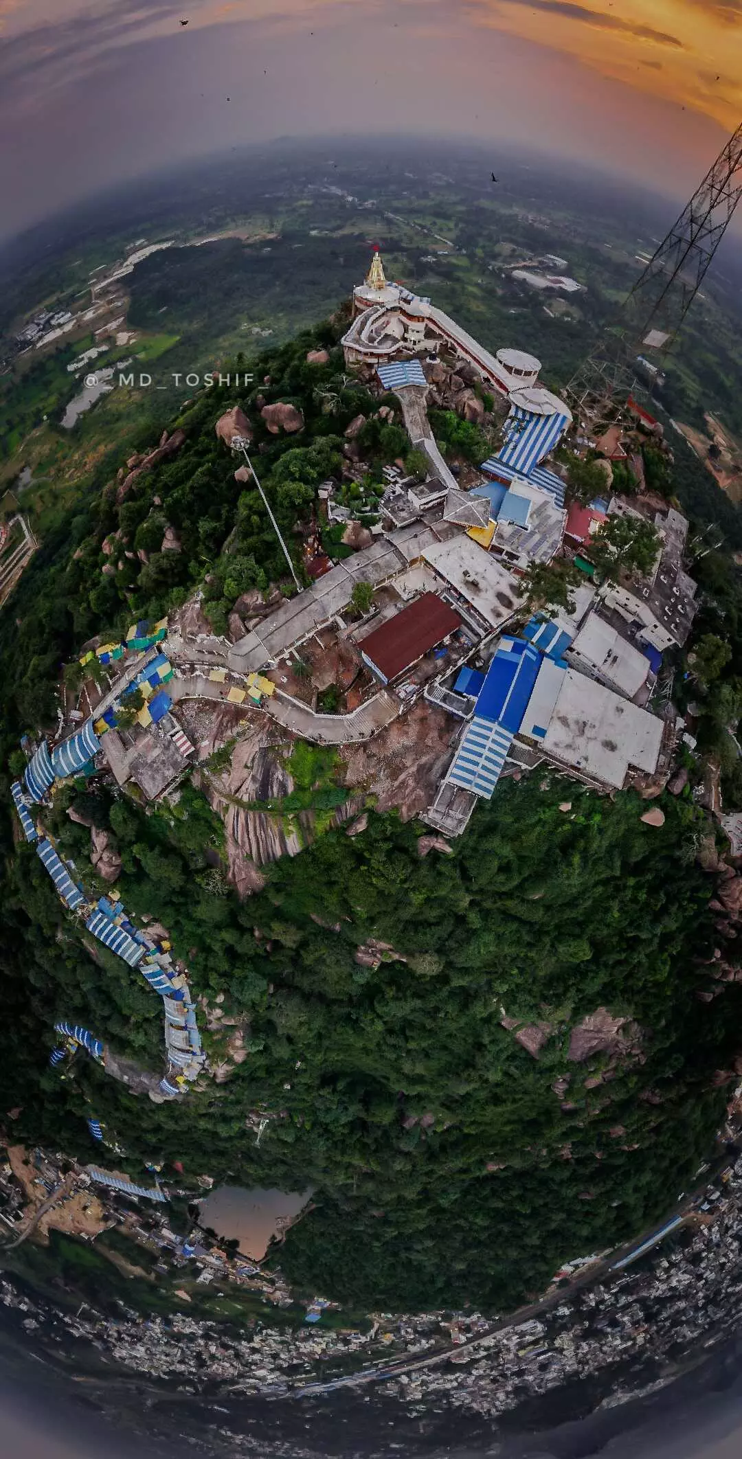 पहाड़ पर स्थित मां बम्लेश्वरी मंदिर की 360 डिग्री तस्वीर