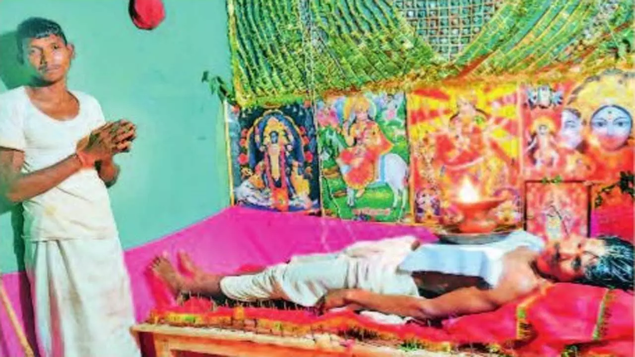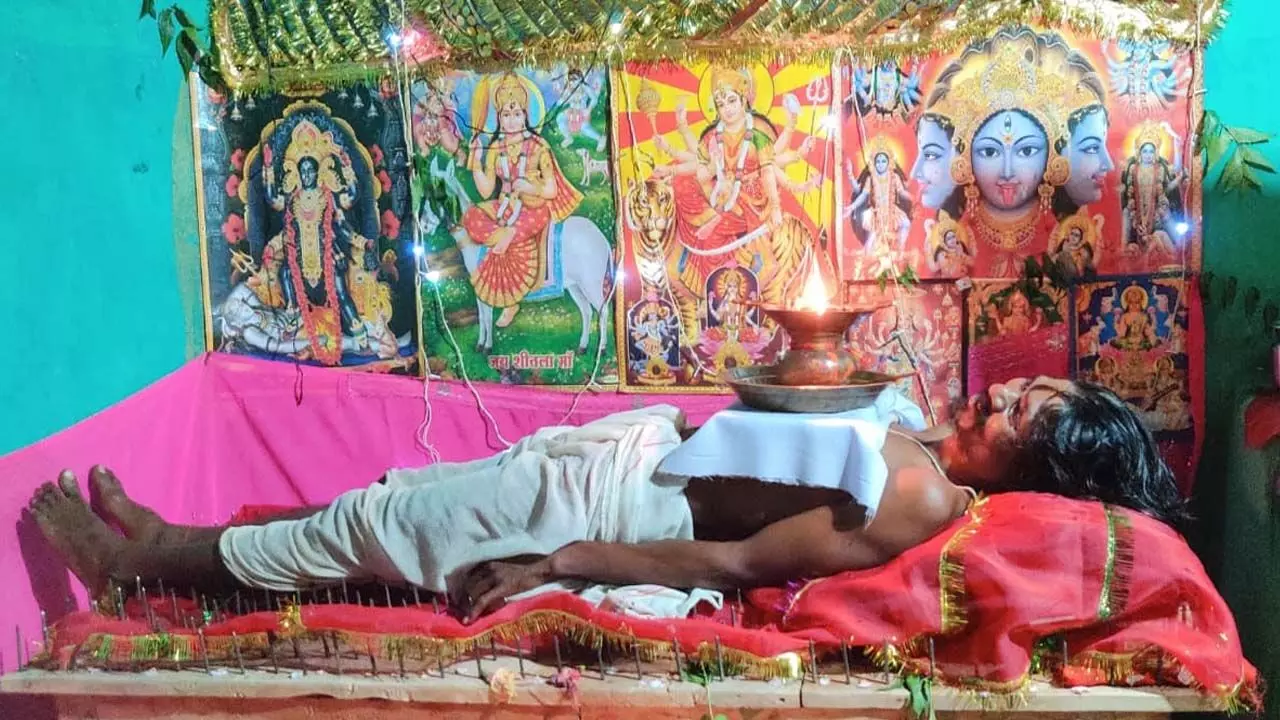 शारदीय नवरात्रि में भक्ति के अनोखे रंग: कीलों के बिछौने पर लेटकर सीने पर जलाई अखंड ज्योति