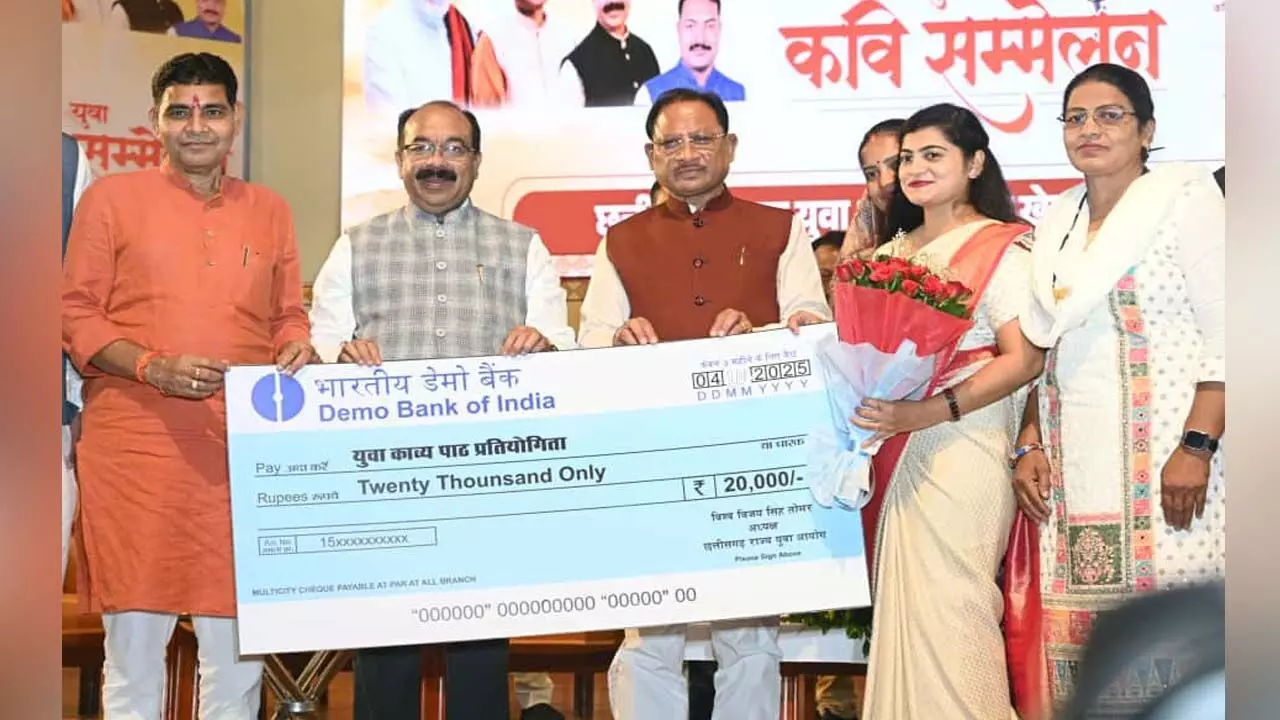 राज्य स्तरीय युवा कवि प्रतियोगिता में बिलासपुर जिले की निधि तिवारी ने प्रथम स्थान, मीरा मृदु ने द्वितीय स्थान और कोरिया जिले की अलीशा शेख ने तृतीय स्थान प्राप्त किया। मुख्यमंत्री साय ने सभी विजेता प्रतिभागियों को सम्मानित किया और उनके उज्ज्वल भविष्य की कामना की।