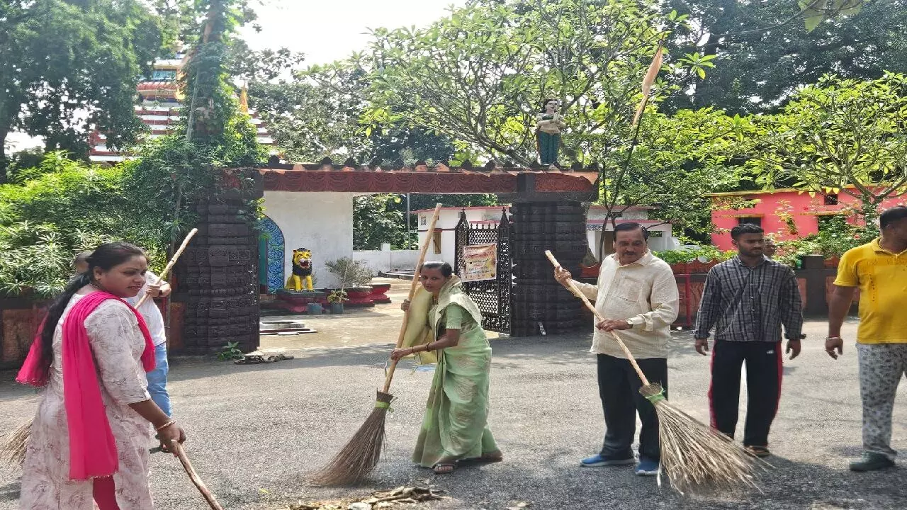 राम मंदिर के पास स्वच्छता करते भाजपाई नेता