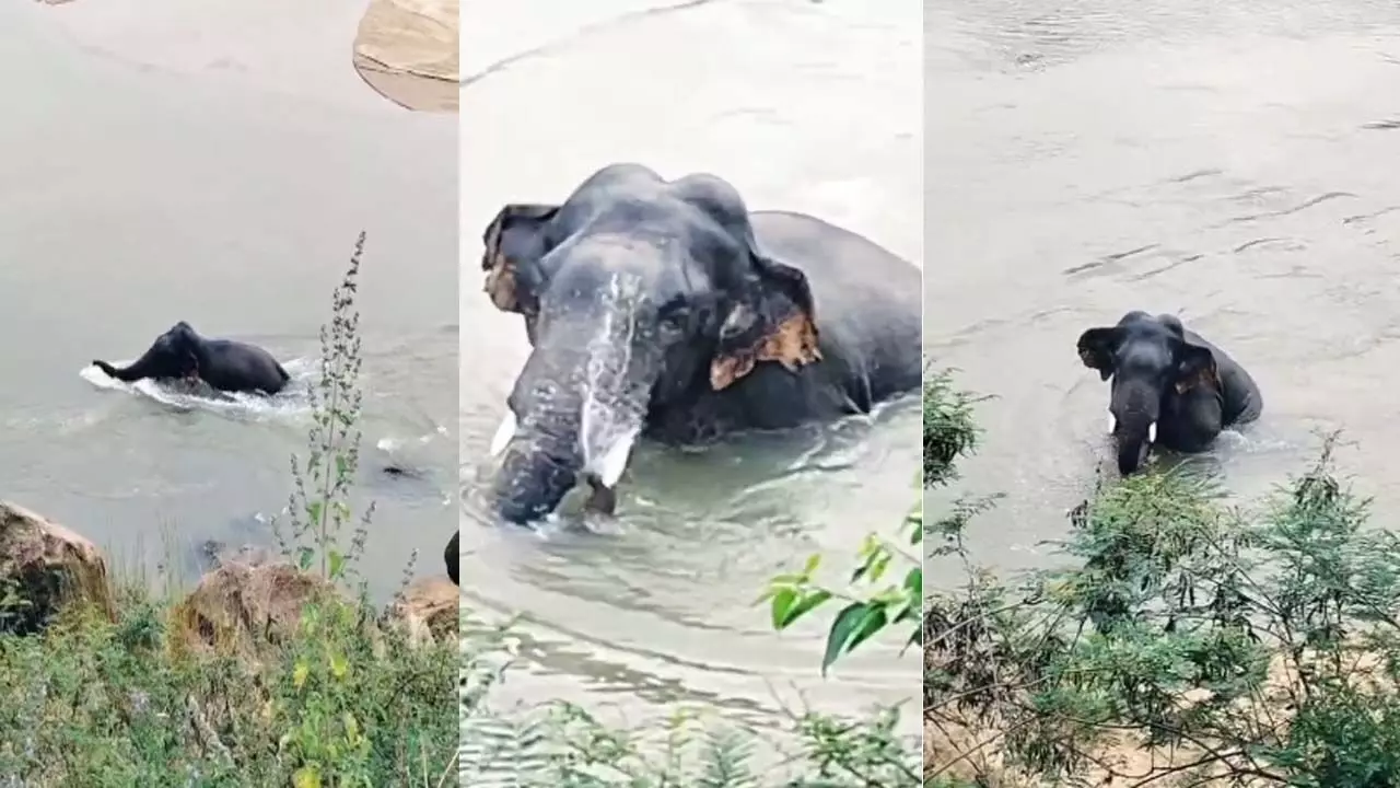 सूरजपुर नदी में खेलते हाथी का वीडियो वायरल