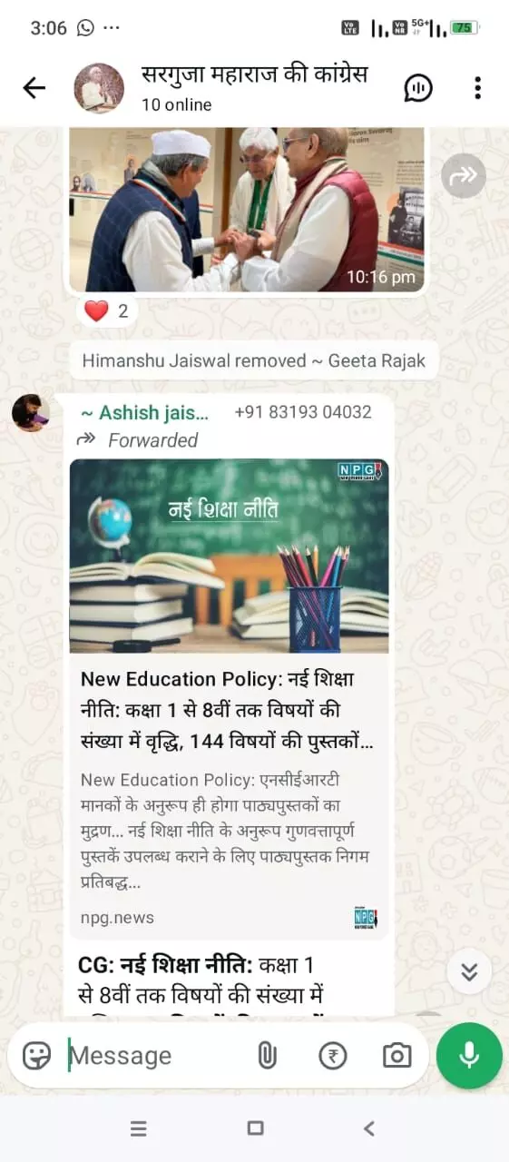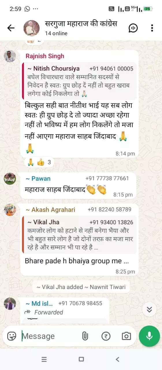कांग्रेस में एक बार फिर गुटबाजी आई सामने: सरगुजा महाराज की व्हाट्सएप ग्रुप में भूपेश समर्थकों को दी जा रही रिमूव होने की सलाह