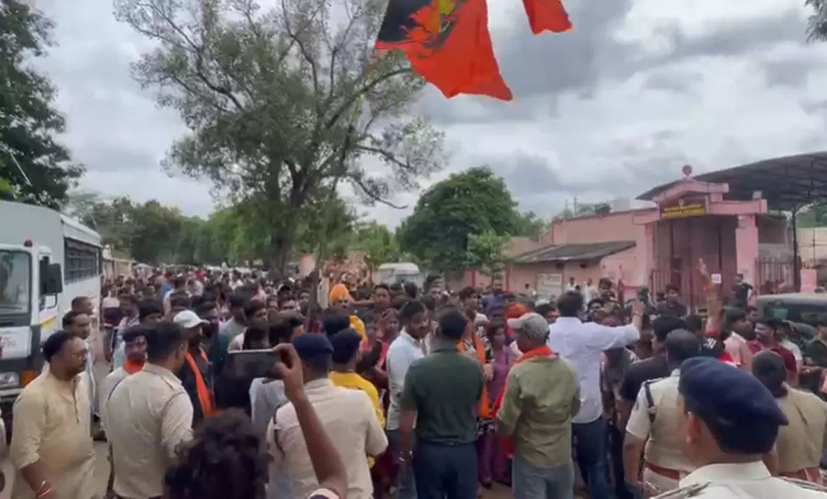 थाने का घेराव कर प्रदर्शन करते हुए हिन्दू संगठन के सदस्य