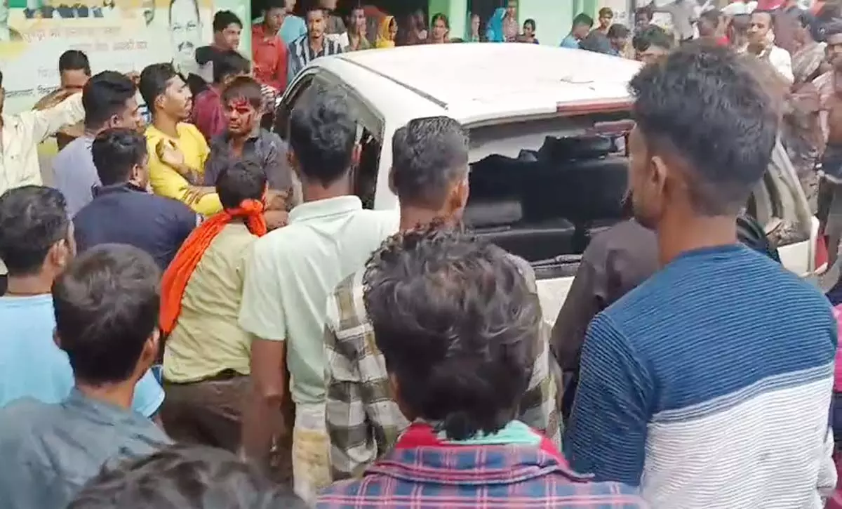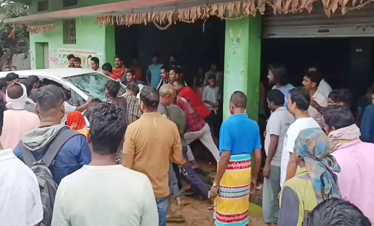 ग्रामीणों द्वारा चालक को फटकार लगाते हुए