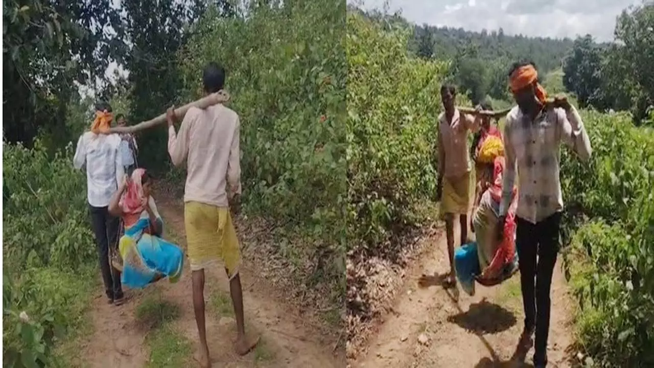 कांवर पर ढोकर गर्भवती महिला को 2 किमी. तक ले जाया गया