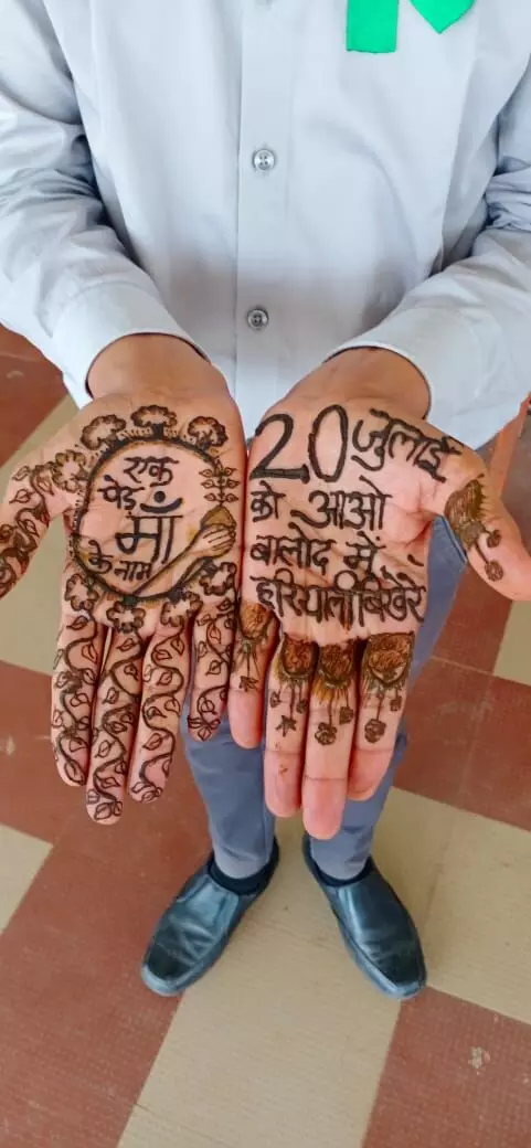 पर्यावरण प्रेमी भोज कुमार साहू ने ‘एक पेड़ माँ के नाम’ जैसे संदेश को अनोखे अंदाज़ में लोगों तक पहुंचाया है। उन्होंने अपने हाथों पर मेहंदी से 20 जुलाई को हरियाली बिखेरें लिखवाकर सोशल मीडिया के ज़रिए जागरूकता फैलाई है। लोग इस पहल की खूब सराहना कर रहे हैं। वहीं 'ग्रीन कमांडो' के नाम से पहचाने जाने वाले वीरेंद्र सिंह भी इस अभियान में जुटे हुए हैं। वो छोटे-छोटे स्कूली बच्चों के साथ मिलकर लोगों से 'एक पेड़ माँ के नाम' लगाने की अपील कर रहे हैं। जिले के कई शिक्षक और सामाजिक कार्यकर्ता भी घर-घर जाकर लोगों को पौधारोपण के फायदे समझा रहे हैं।