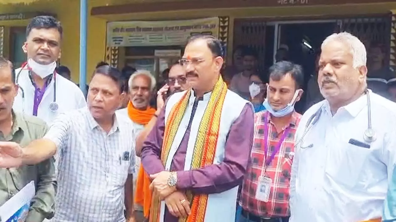 निरीक्षण के दौरान स्वास्थ्य मंत्री श्याम बिहारी जायसवाल