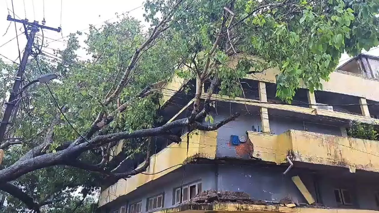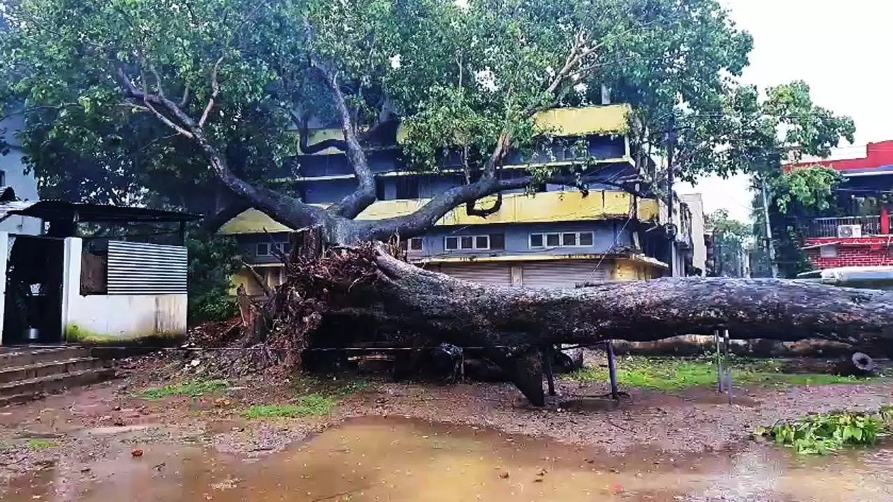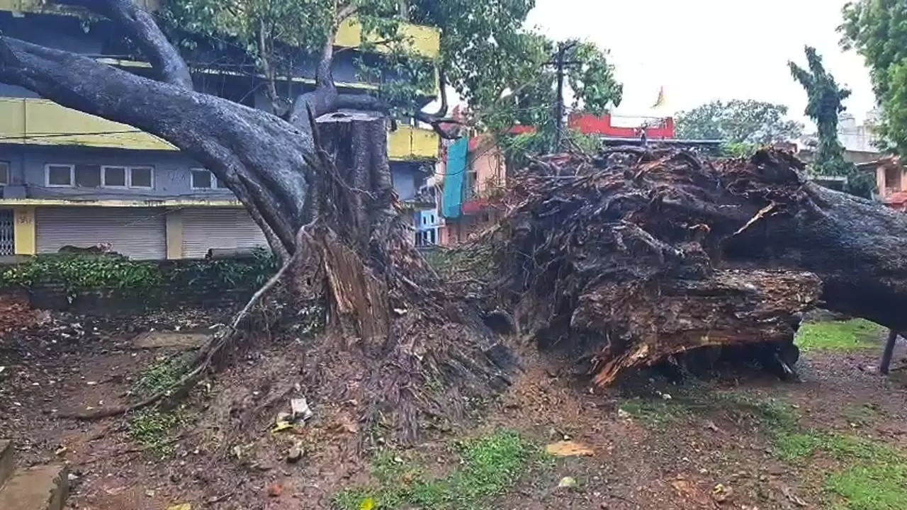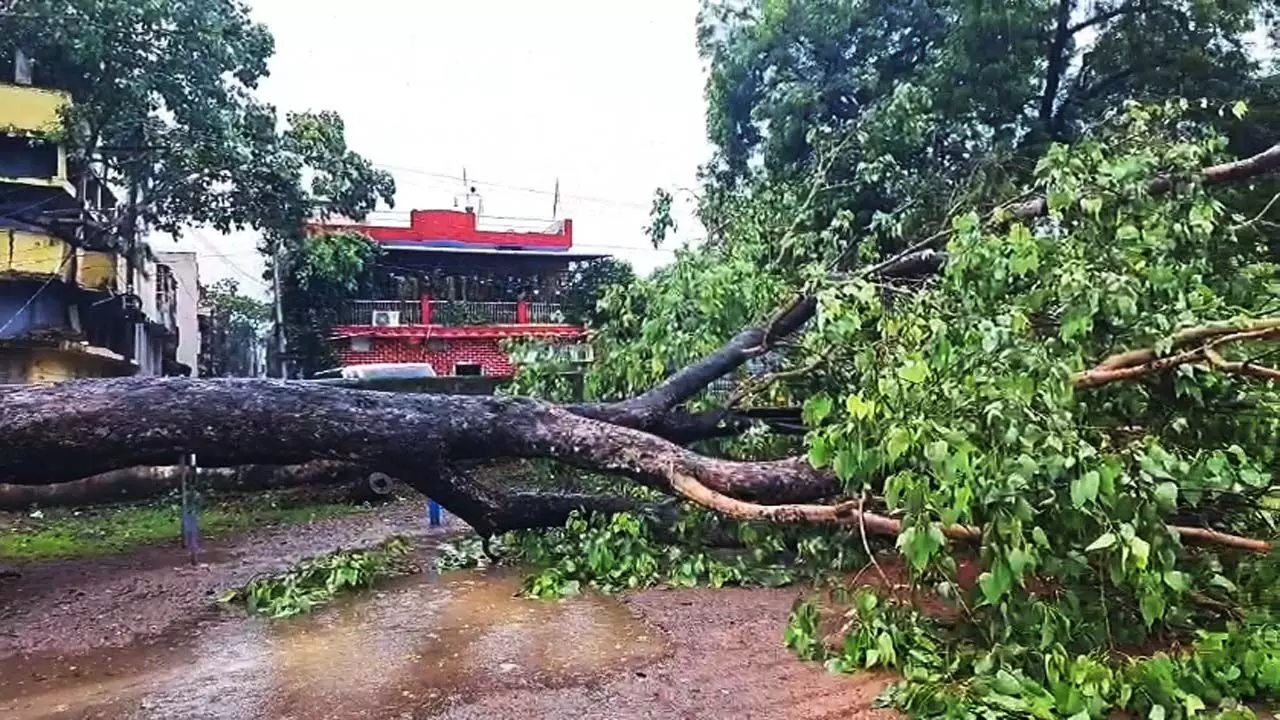 आकाशीय बिजली का असर: 200 साल पुराना पीपल का पेड़ गिरा, तीन घर क्षतिग्रस्त