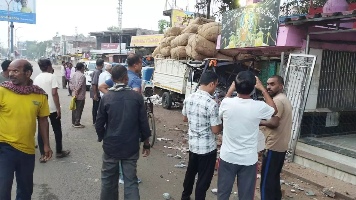 भीषण सड़क हादसा: तेज रफ्तार पिकअप अनियंत्रित होकर मंदिर में घुसी, गार्ड गंभीर रूप से घायल