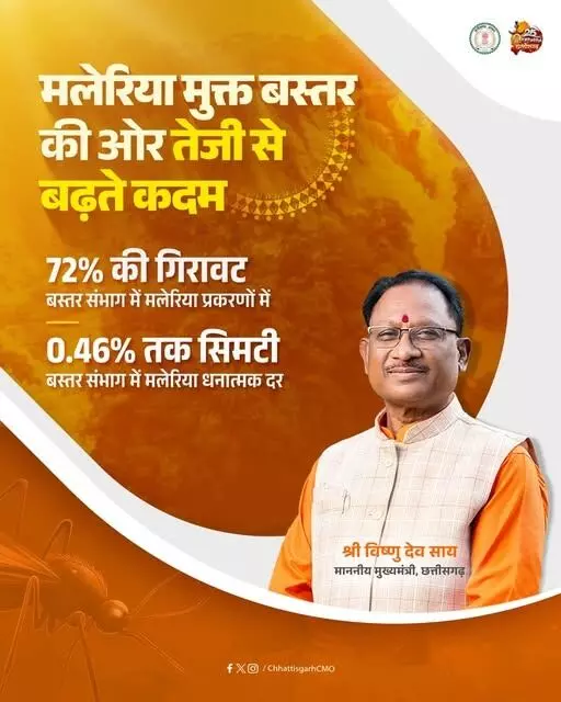 सीएम विष्णु देव साय ने इस उपलब्धि पर प्रसन्नता व्यक्त करते हुए कहा कि मलेरिया मुक्त छत्तीसगढ़ अभियान हमारी सरकार की जन-केंद्रित सोच और समर्पित स्वास्थ्य प्रयासों का परिणाम है। उन्होंने कहा कि बस्तर जैसे क्षेत्र में मलेरिया नियंत्रण में मिली यह सफलता स्वास्थ्य विभाग के अधिकारियों और कर्मचारियों, मितानिनों और स्वास्थ्य कार्यकर्ताओं की मेहनत का प्रमाण है।
