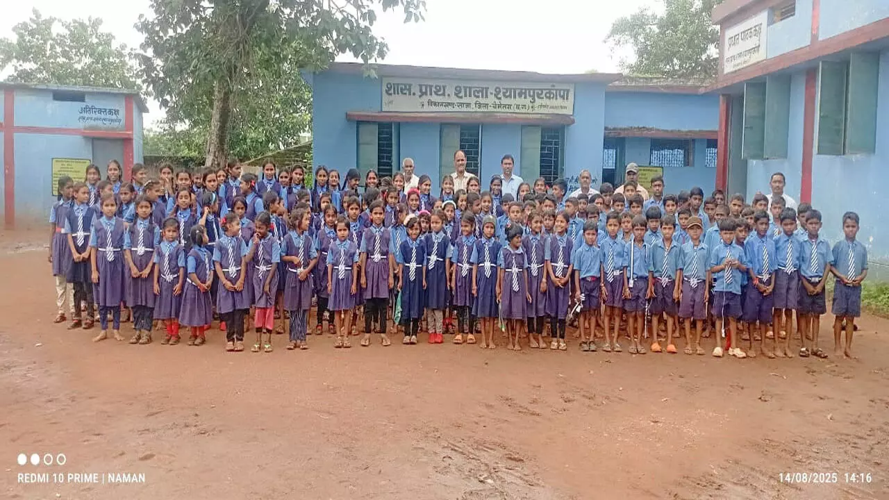 स्वतंत्रता दिवस पर प्रधानपाठक की सराहनीय पहल: पहली से कक्षा 8वीं तक के 160 बच्चों को बांटा टाई-बेल्ट