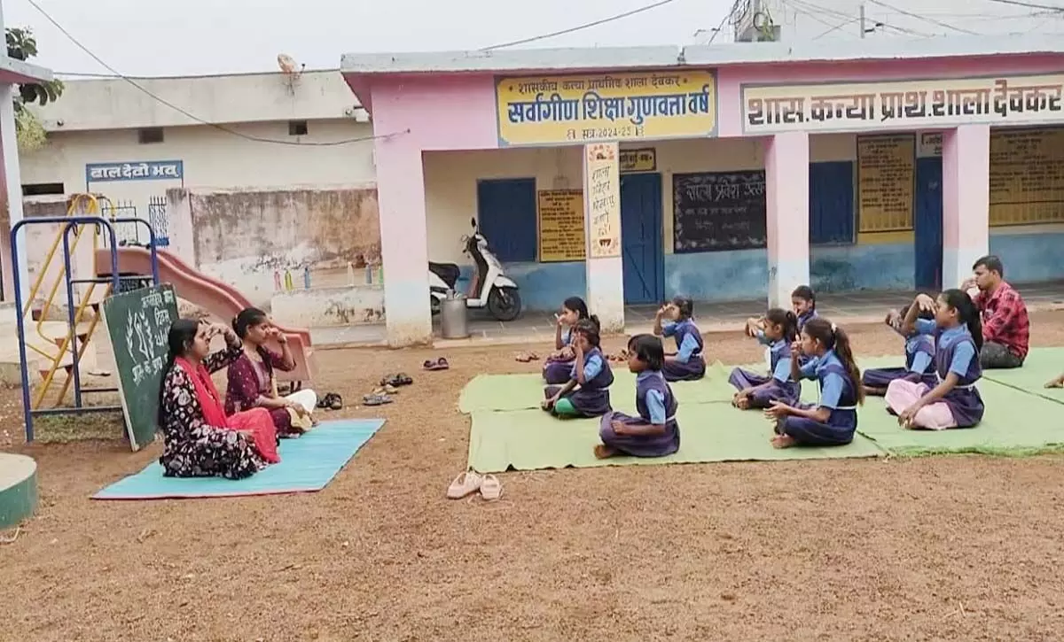 कन्या शाला देवकर में बच्चियों ने दिखाया योग का उत्साह
